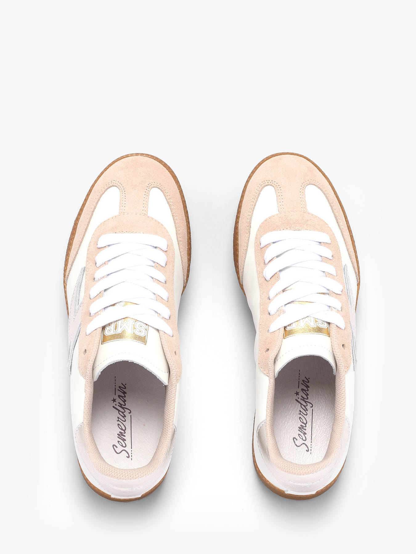 Les baskets Emily de Semerdjian trouvent l’équilibre parfait entre sobriété et brillance pour un look urbain chic au quotidien. Leur base en cuir blanc de qualité assure confort et résistance, tandis que les empiècements en daim beige ajoutent texture et modernité. Les nombreux détails en cuir métallisé argent et or, associés à l’éclair signature, apportent luminosité et caractère à chaque pas, faisant de ces baskets un modèle à la fois élégant et tendance. Polyvalentes et stylées, elles se portent facilement en ville ou lors de vos sorties, offrant à la fois confort, durabilité et un design raffiné qui attire tous les regards. Les Emily incarnent parfaitement le style contemporain Semerdjian.